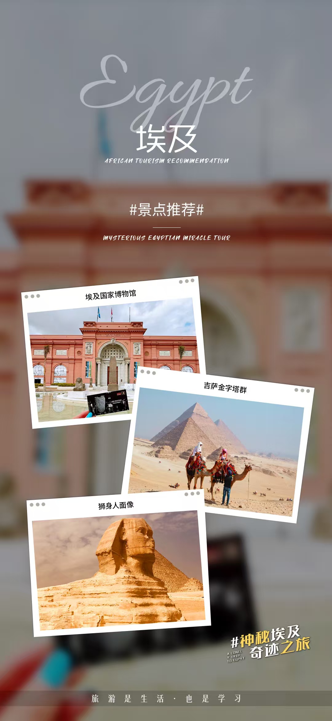 抵达后,专业机场助理协助办理入境手续,导游接机,开始难忘的埃及之旅 前往参观【吉萨金字塔群】,包括【胡夫金字塔】、【海芙拉金字塔】、【孟卡拉金字塔】(时间:约90 分钟,如果需要进入最大的胡夫金字塔内看石棺需自行购票入大塔或小塔(约 1500 埃磅),每天有名额限制进入) 继而前往位于金字塔旁著名的【狮身人面像】(参观时间:约 30 分钟),埃及著名古迹,与金字塔同为古埃及文明最有代表性的遗迹。古埃及人常用狮子代表法老王,象征其无边的权力和无穷的力量,这种法老王既是神又是人的观念,促使了狮身人面混合体的产生 中午特别安排【金字塔景观餐厅午餐】,享用【景观下午茶】,饱览金字塔景观,体验惬意生活 特别安排参观【大埃及博物馆】,2024 年 10 月 16 日起试运营,筹备近 20 年、耗资 10 亿美金,馆藏超过 10 万件文物,世界上最大的考古博物馆。不仅收拢了埃及不同博物馆里最顶尖的藏品,还将展出过去从未向公众公开的宝贵珍品,将向公众呈现 5 万多件文物,其中 3 万多件是首次对外展出(停留时间:约 90 分钟) 参观【艾资哈尔清真寺】(Al-Azhar Mosque)是埃及开罗的宗教与文化瑰宝之一。建于公元 970 年,这座历史悠久的清真寺不仅是伊斯兰世界的重要宗教中心,更是全世界最古老伊斯兰大学所在地,代表了阿拉伯文化、宗教教育与历史的辉煌(停留时间:约 30 分钟) 前往久负盛名的当地大市场【汗哈利利集市】,全埃及最著名的阿拉伯商品市场之一,该市场游人如织,已有 800 年历史,是阿拉伯的著名的交易中心。如果您逛累了,可以停下来喝上一杯,看看当地人朴实的招揽生意方式也很有趣,特别安排下午茶,一杯特别的【薄荷茶果汁或芒果果汁】(二选一)(停留 时间约 60 分钟)